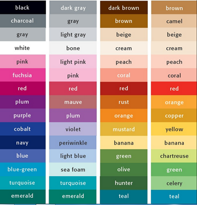 Berikut ini merupakan nama warna-warna dalam bahasa Inggris beserta artinya, baik warna-warna umum serta warna-warna yang kurang familiar lainnya.